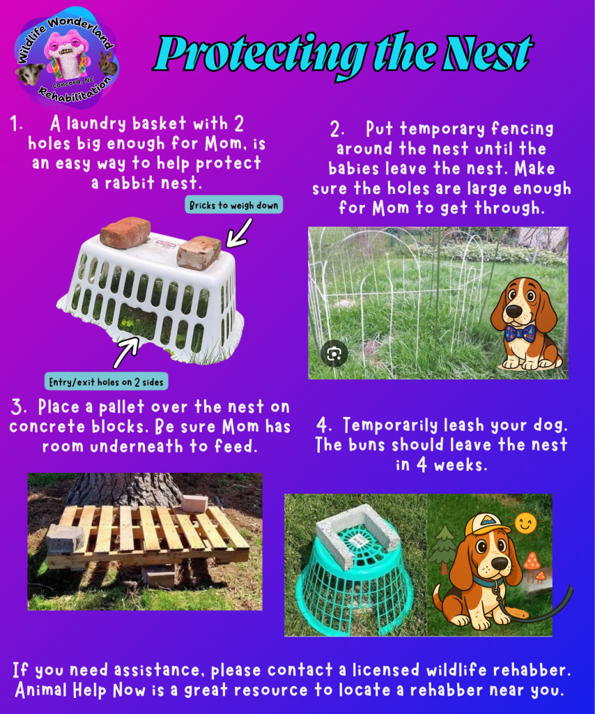 A visual guide to protecting bunny nests when threatened by predators or pets.